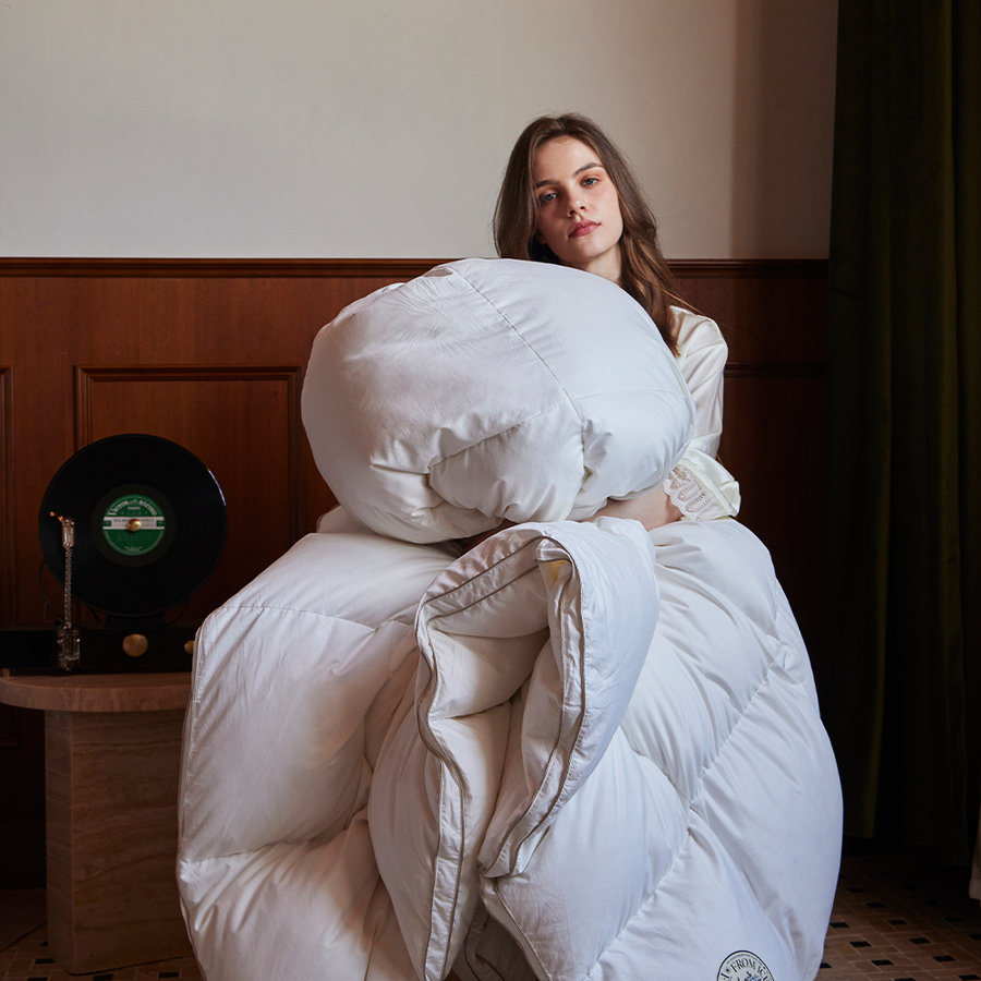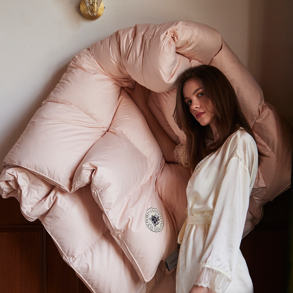 Crafted from 95% pure white goose down sourced exclusively from the North Songhua River region, our down comforters redefine luxury and comfort. Experience the essence of opulence as you nestle in the unrivaled softness and warmth of our exquisite bedding.